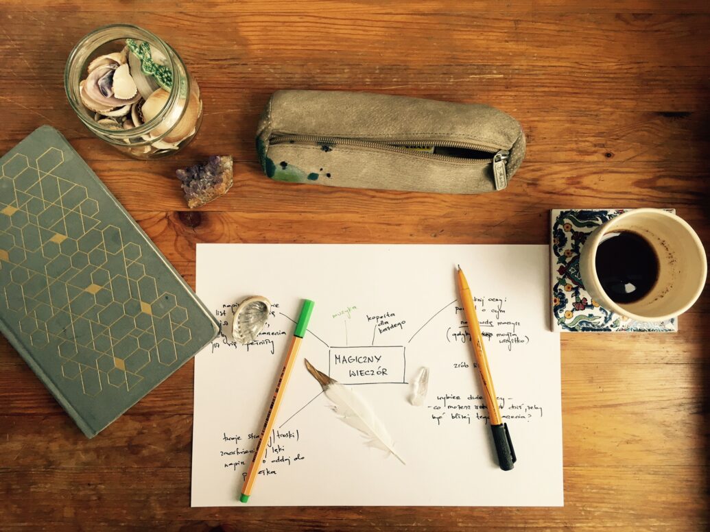 W kursie, były dla mnie rzeczy, które już znałam i kiedyś robiłam, ale było też dużo niespodzianek. Na przykład tworzenie do muzyki (malowanie albo pisanie), było dla mnie czymś zupełnie nowym. Albo to zadanie, żeby pobyć na łonie natury i NIC nie robić. No i to nurkowanie w notesach, pamiętnikach, notatnikach… Zanurkowałam i znalazłam mnóstwo perełek, dziwnych zdań, opisów sytuacji, wspomnień. Mnóstwo inspiracji do pisania, a udało mi się przejrzeć raptem trzy notesy.